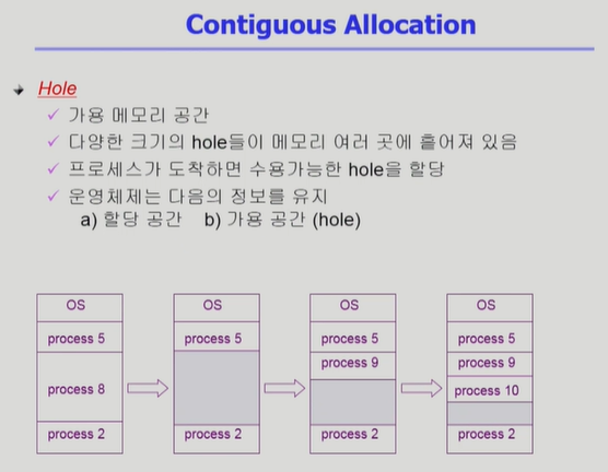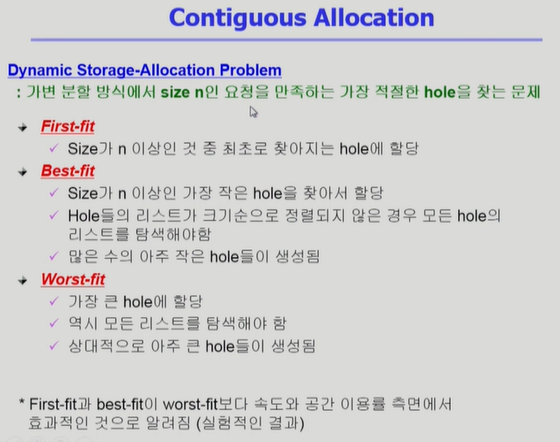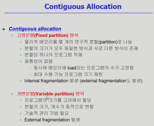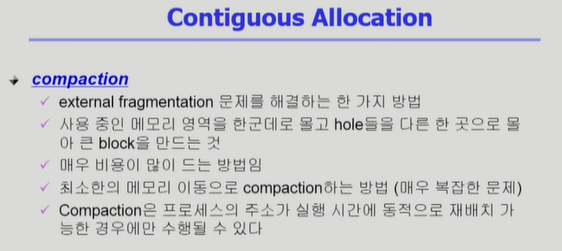 - 지금까지 설명된 이론들은 모두 연속 할당을 기반으로 한 것들이다 (현대의 시스템은 불연속 할당)