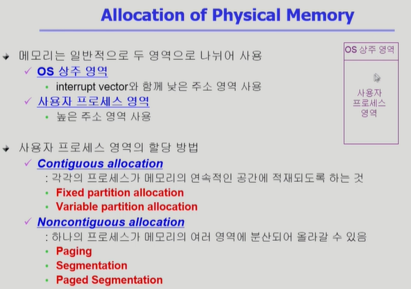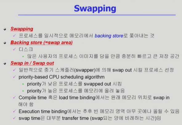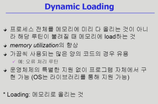 - 현대의 메모리 관리는 OS차원에서 페이징 기법으로 하는 것이다 ↔ dynamic loading: 프로그래머의 명시적인 관리