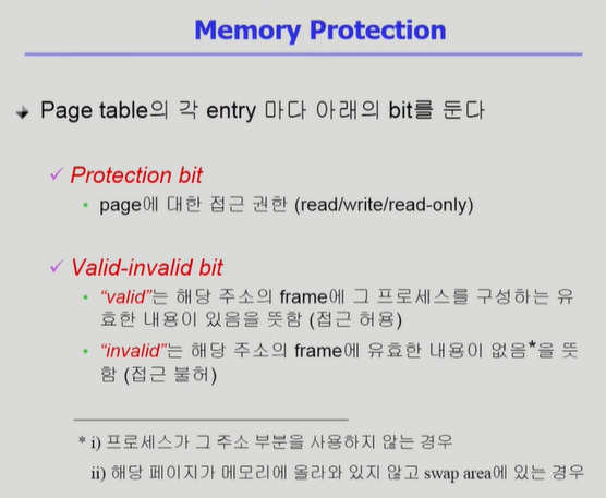 - 해당 프로세스의 논리 주소가 page table의 몇번째 엔트리에 있는지 확인 후 물리 메모리에도 같은 인덱스로 접근