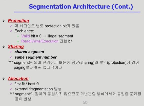 - 공유 코드 내부에 logical address로 적힌 코드도 있으므로 각 프로세스의 주소공간에서 동일한 위치에 있어야 한다