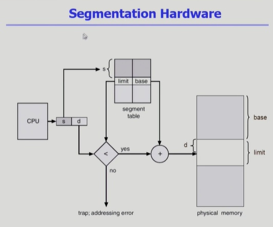 - 정상 작동하면 테이블에 s번째 -> 물리 메모리에 base + d 번째로 접근